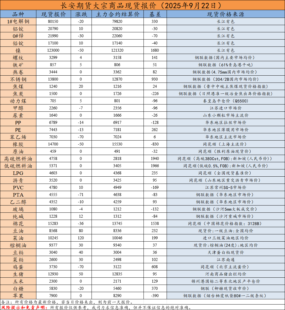 上一篇: 长安研究-大宗商品现货报价-2025年9月19日