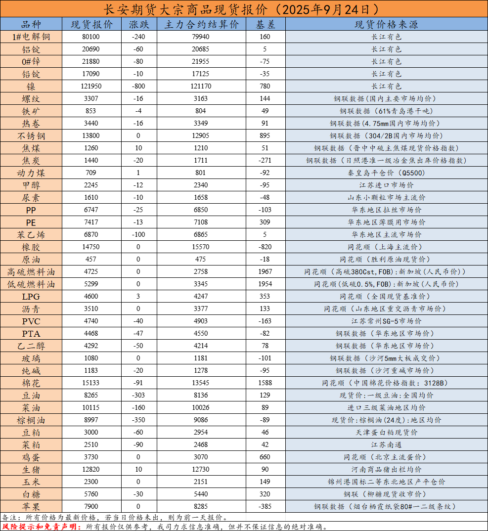 上一篇: 长安研究-大宗商品现货报价-2025年9月23日
