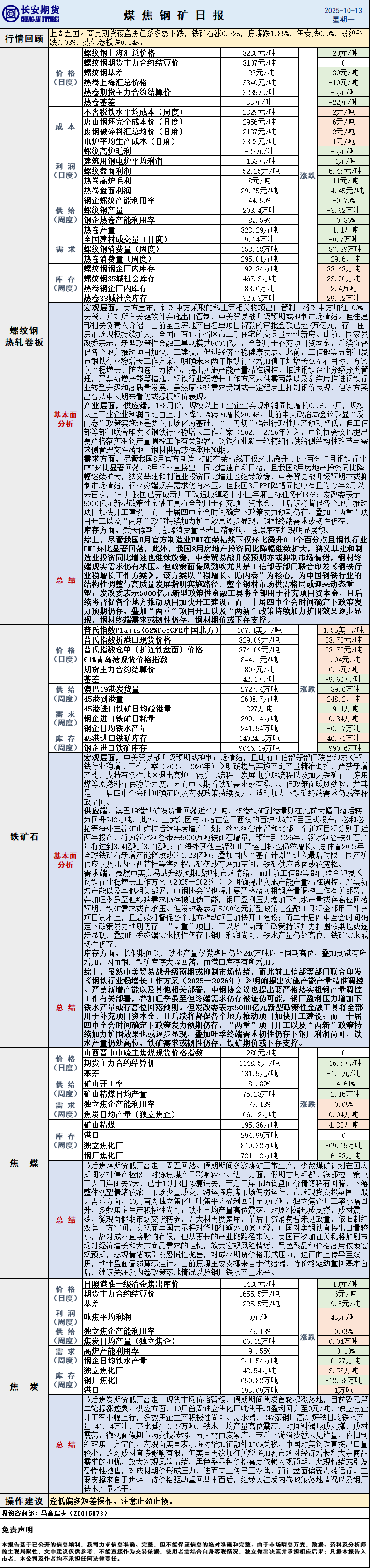 特朗普再度TACO可能性较大叠加国内政策面预期提振仍存,黑色系或下存支撑-煤焦钢矿早评-2025年10月13日