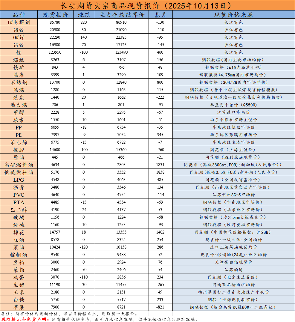 上一篇: 长安研究-大宗商品现货报价-2025年10月10日