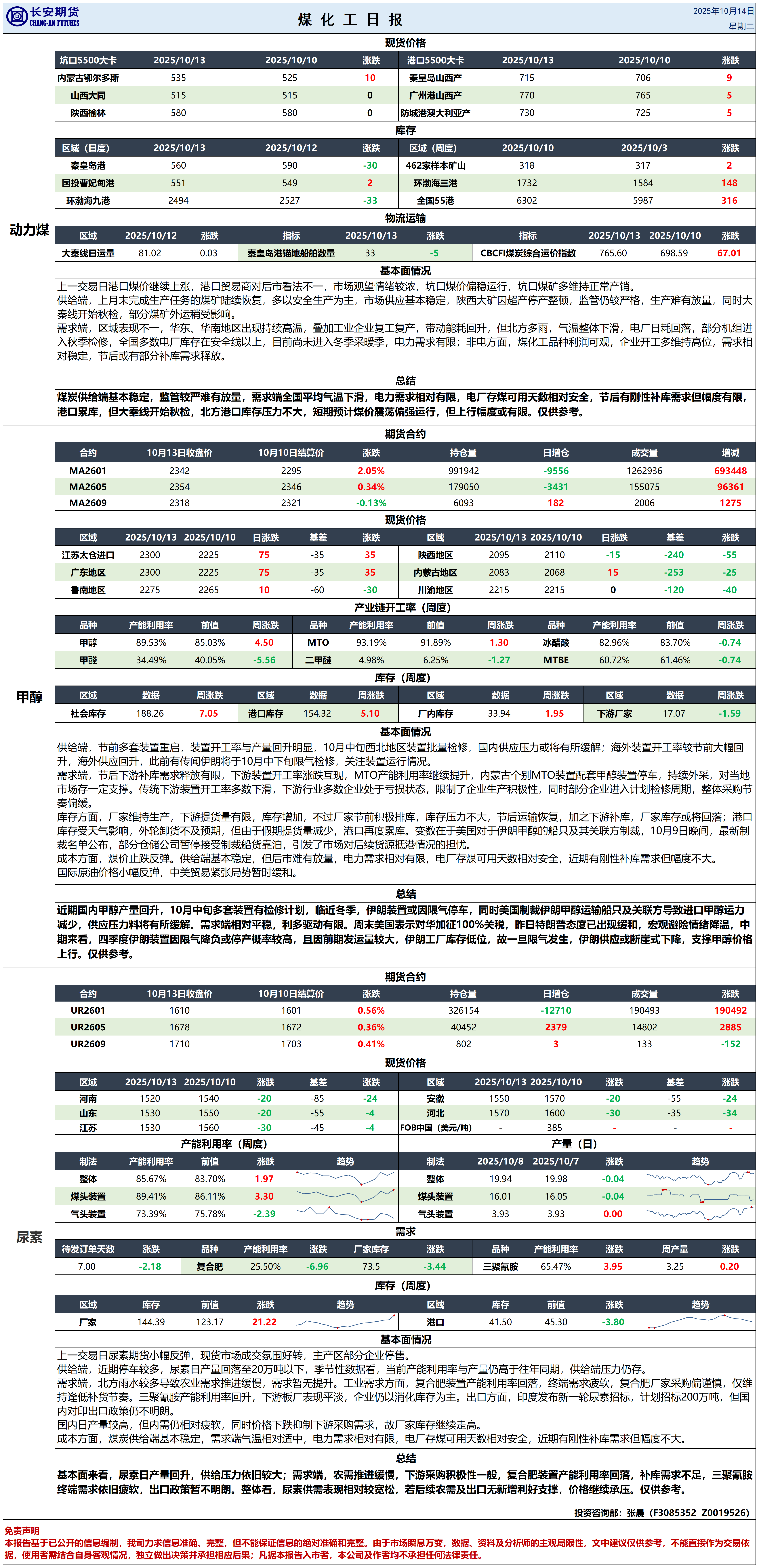 煤化工日报-2025年10月14日