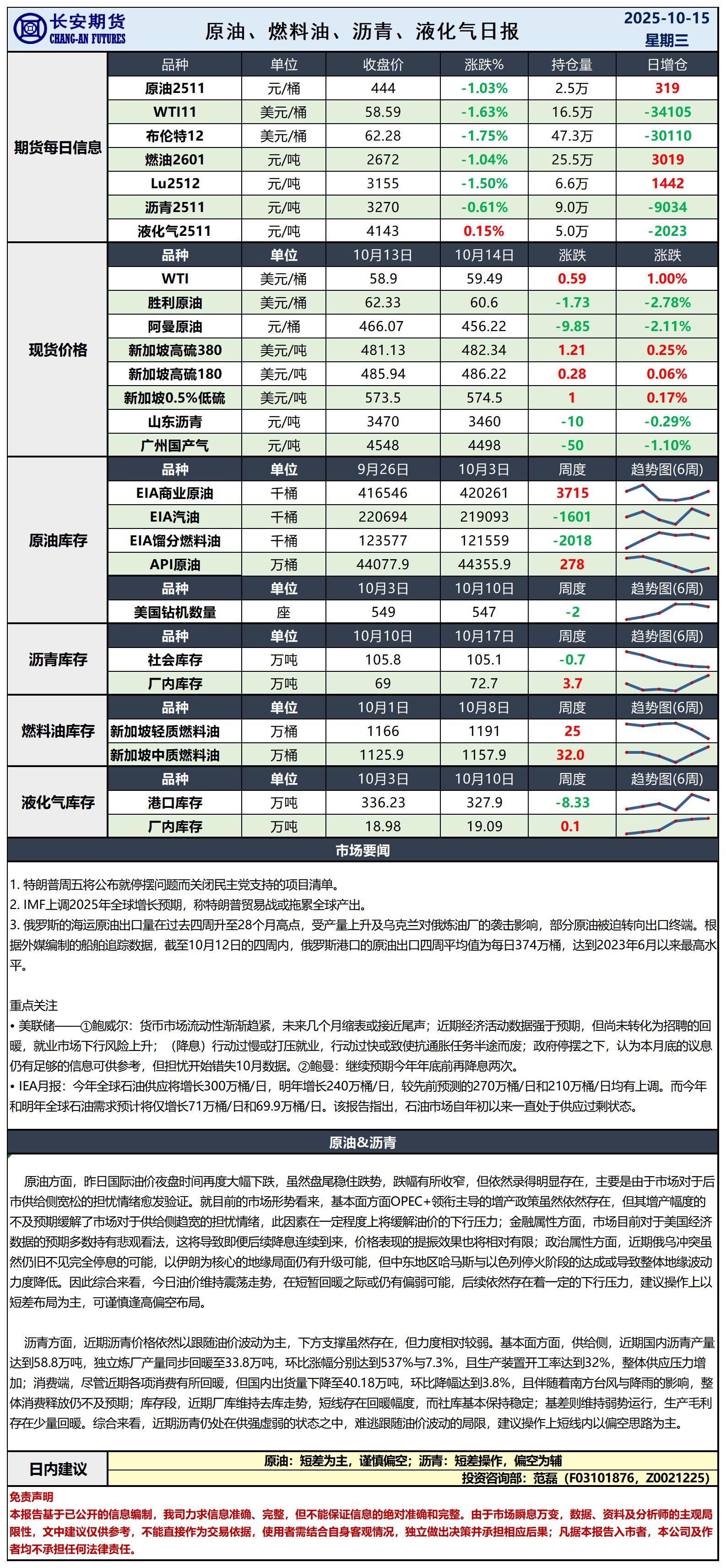 IEA上调供给宽松预期,油价维持承压运行-原油早评-2025年10月15日
