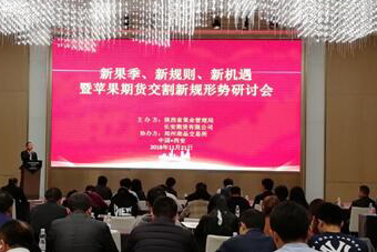 随着新果季的到来,苹果期货交割新规的颁布,为积极引导苹果产业客户更好的利用苹果期货规避风险,实现资源的优化配置,2018年11月21日,由长安期货有限公司、陕西省果业管理局和郑州商品交易所联合举办的“新果季、新规则、新机遇—暨苹果期货交割新规形势研讨会”在西安蓝...