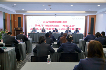 2月19日,长安期货在总部召开专题会议,传达学习陕煤集团和开源证券三届四次职代会暨2025年工作会精神。公司经营班子成员、总部中层管理人员及主管序列(含子公司)参加现场会议,19家分支机构、事业部在岗员工通过视频会议系统参会。会议由总经理马拥军主持。...