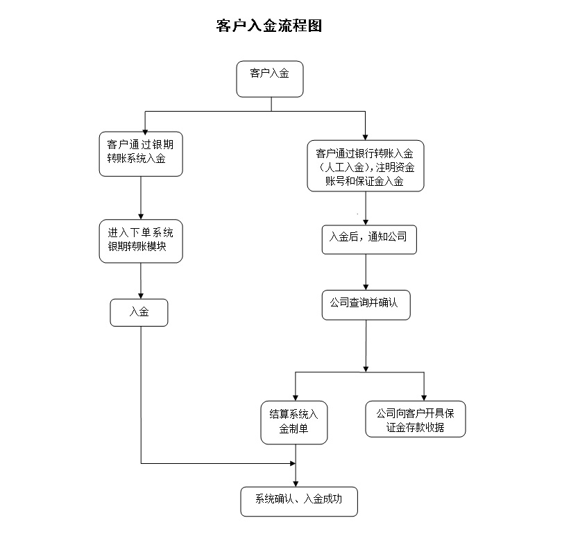 3)客户通过非银期转账方式办理入金后,应及时通知客户经理,由客户经理通知公司财务进行查询后办理入金手续。