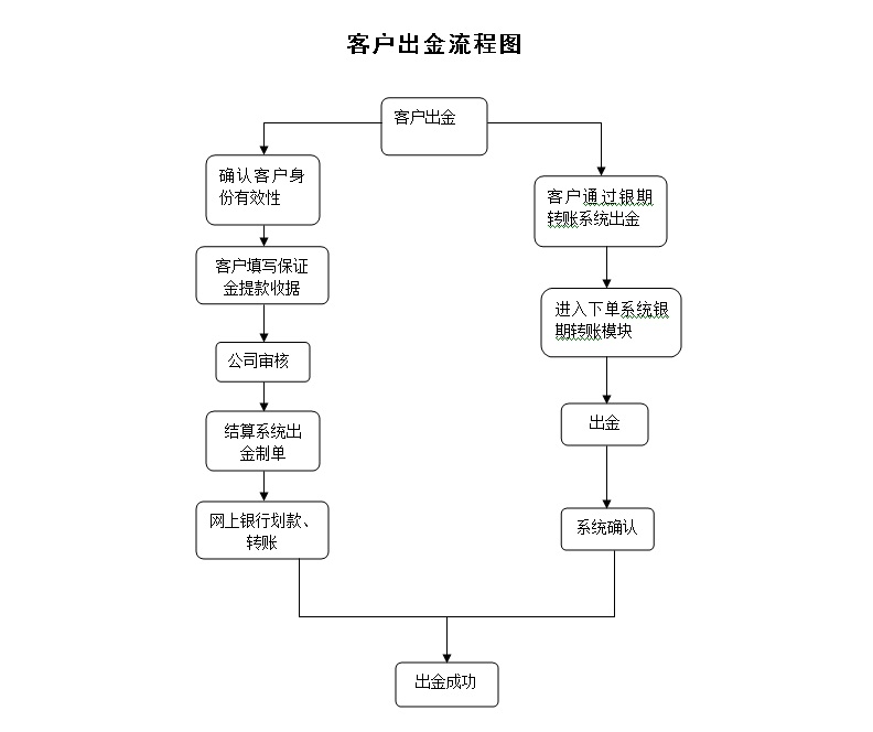 3)客户通过非银期转账方式办理出金的申请时间为正常交易日的8:30----15:30,非该时间范围内申请,出金业务可能会延期至第二工作日办理。