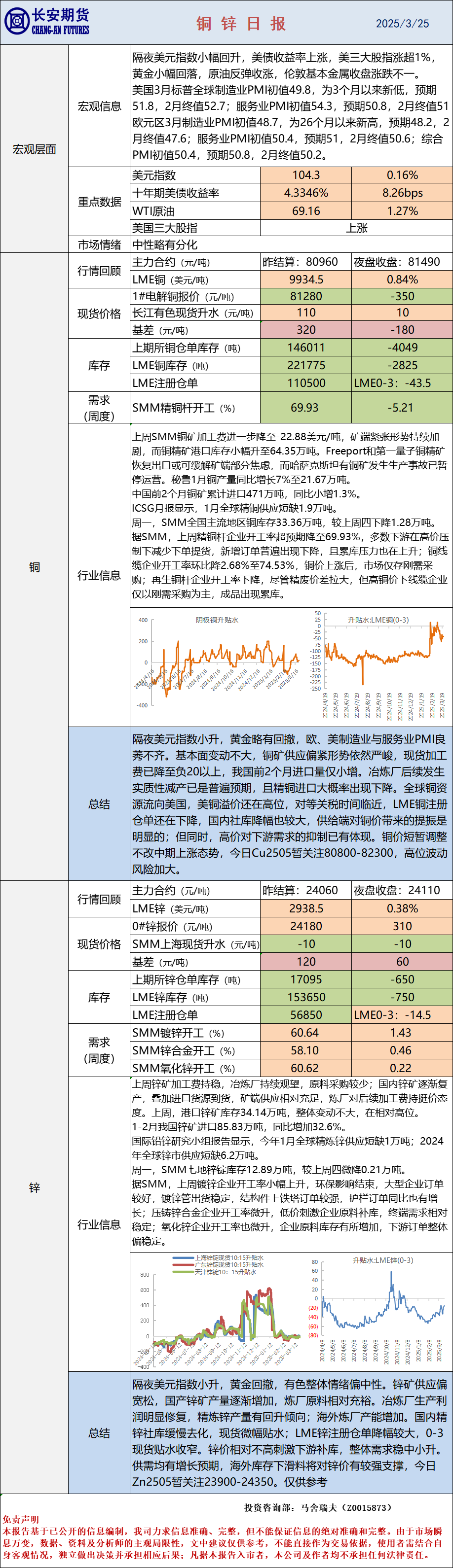 铜价向上动力略显不足,LME锌注册仓单大降提供较强支撑-铜锌早评-2025年3月25日