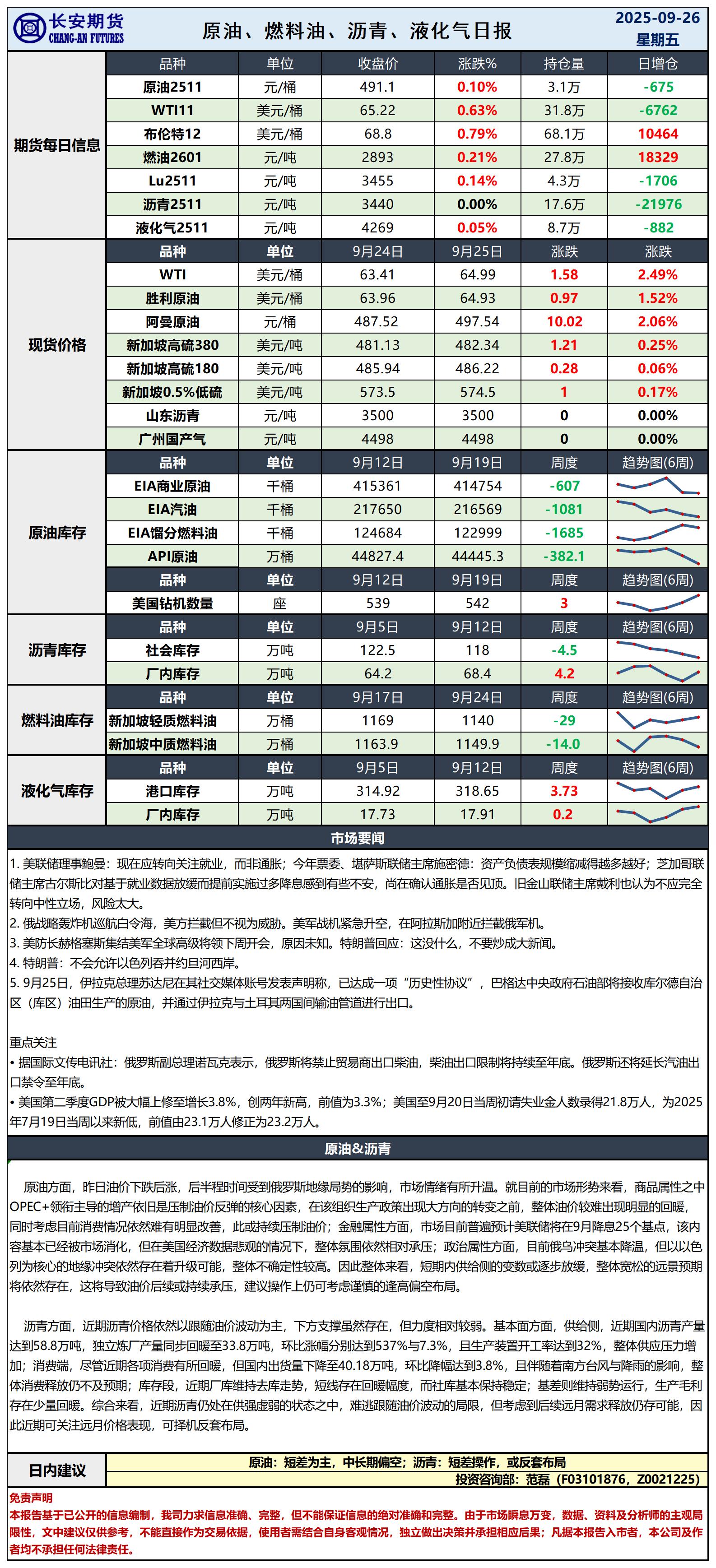 俄罗斯地缘再度波动,油价宽幅运行仍存偏空机会-原油早评-2025年9月26日