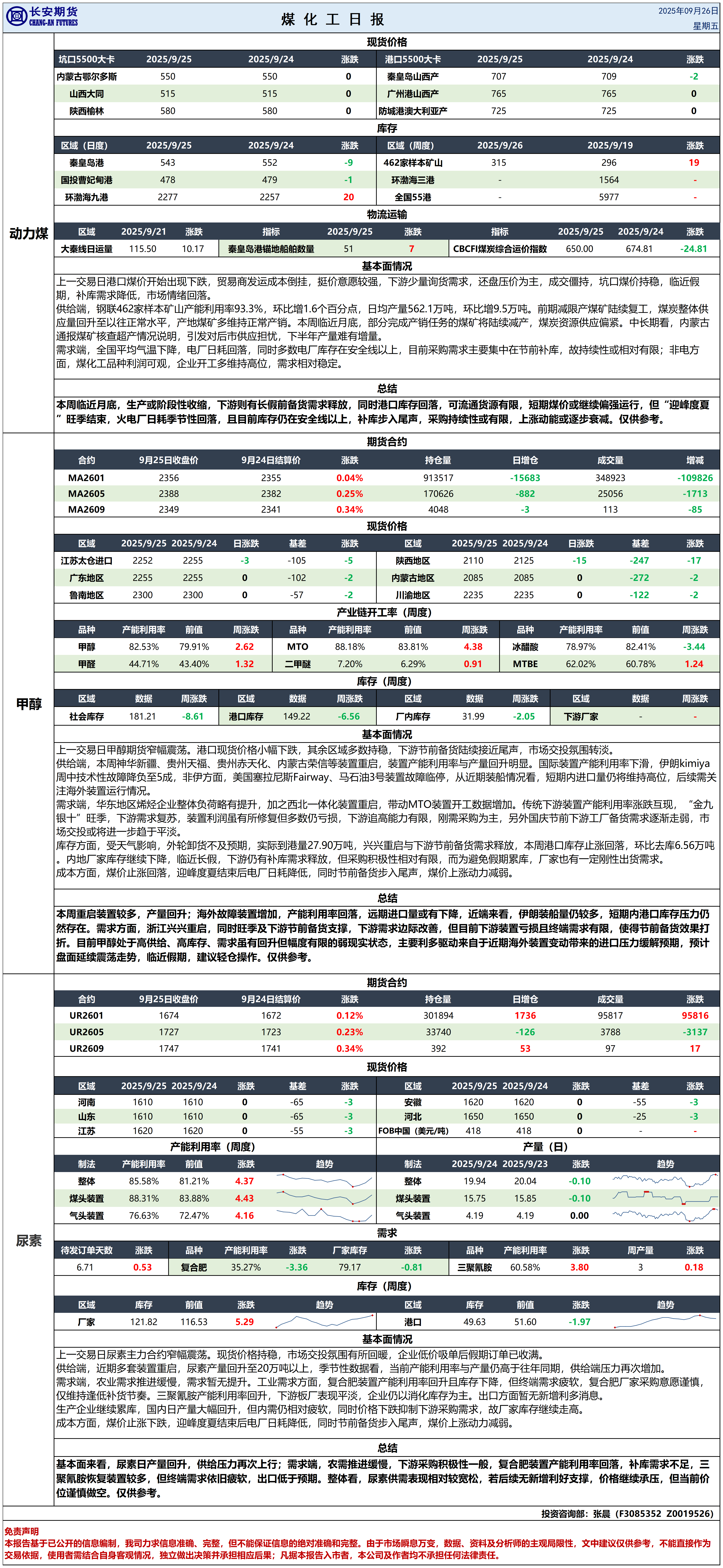 煤化工日报-2025年9月26日